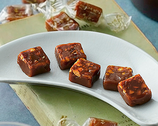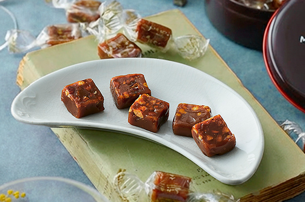 ブルターニュ地方特有の有塩バターでキャラメルを炊き、アーモンド、ヘーゼルナッツ、くるみなどを加えた、アンリ・ルルー考案の塩バターキャラメルです。