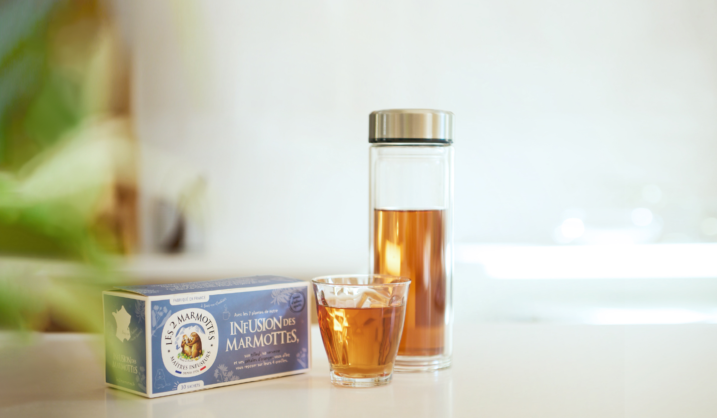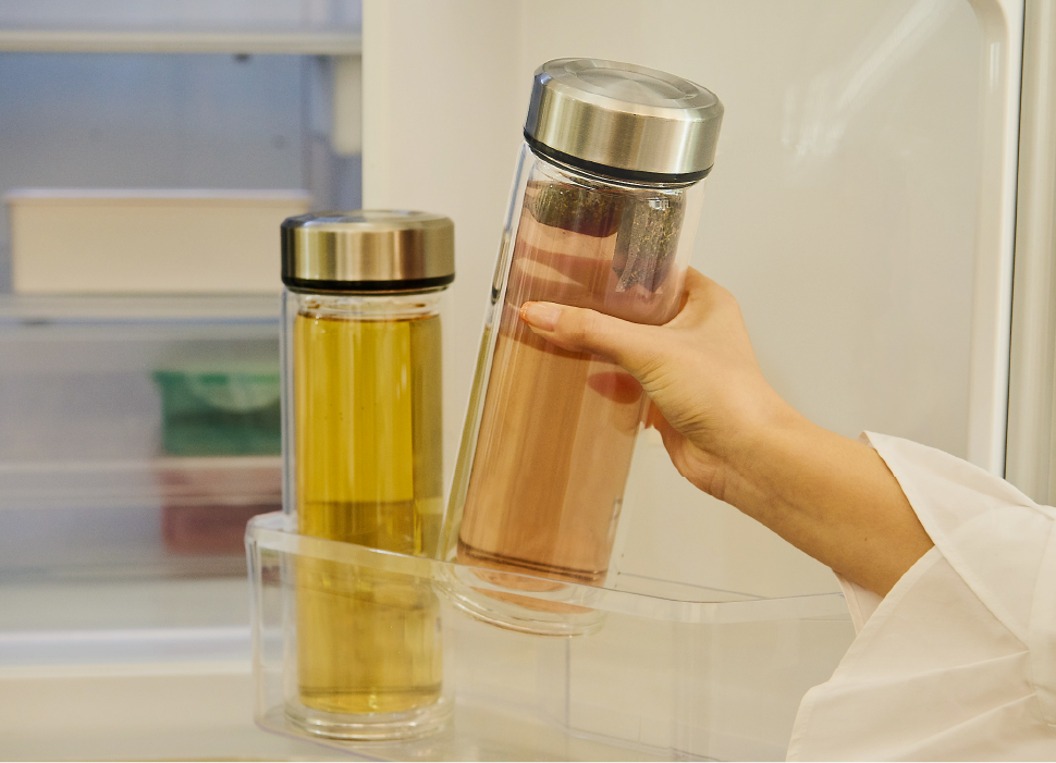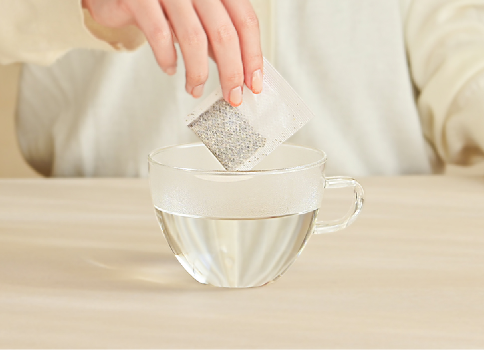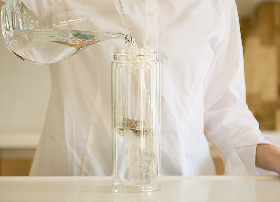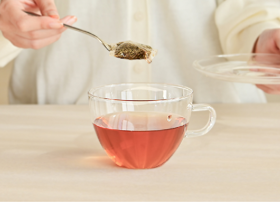 ティーバッグを容器から取り出し、グラスに注いで お召し上がりください。