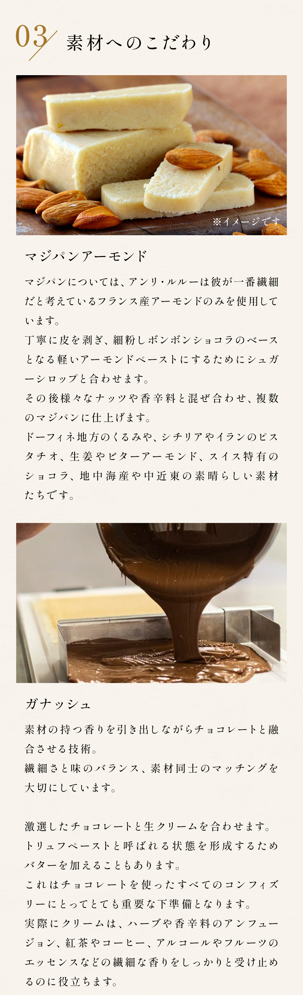 原材料 チョコレート、乳等を主要原料とする食品、砂糖、ヘーゼルナッツ、バター、グルコースシロップ、アーモンド、ココアバター、デキストロース、くるみ、牛乳、乳糖、カカオニブ、食塩、カカオマス/ソルビトール、乳化剤、糊料(カラギナン)、香料、(一部に小麦・乳成分・アーモンド・くるみ・大豆を含む)